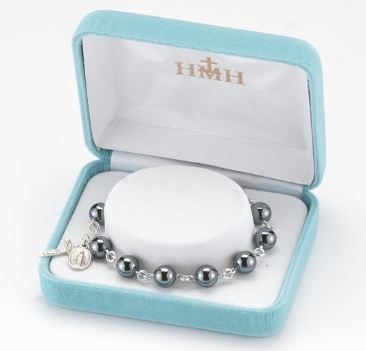 Our Lady of Grace Hematite Rosary Bracelet