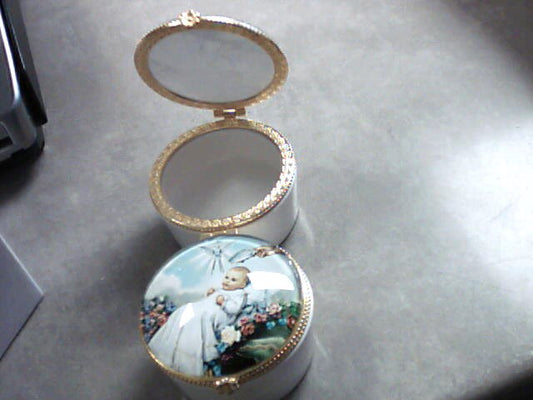 6mm First Communion Heart Shaped Pemium Imitation Pearl Glass Rosary With Two Toned Chalice Center