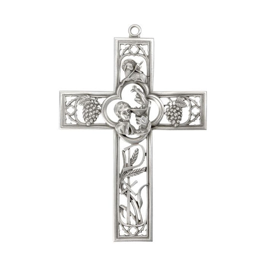 6" GENUINE PEWTER FIRST COMMUNION CROSS WITH CHALICE