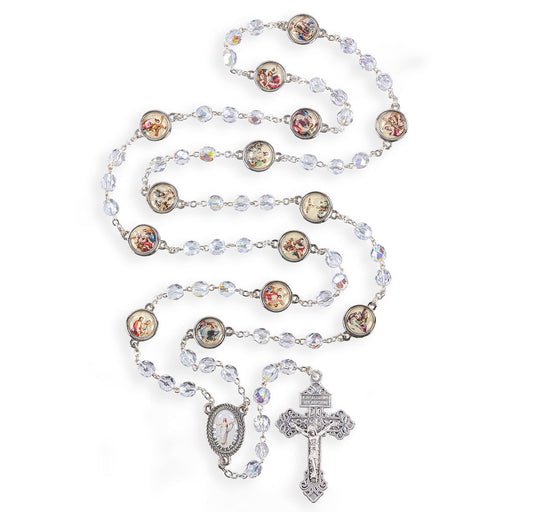 No Stock, Join WaitlistStations of the Cross rosary with white glass beads