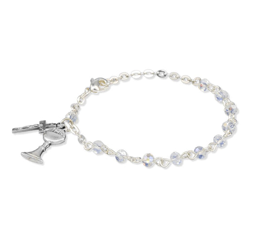 No Stock, Join WaitlistFirst Communion crystal rosary bracelet with crucifix and chalice medals