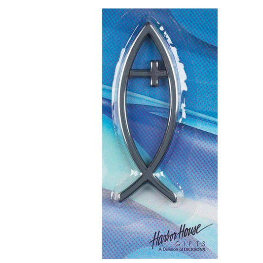 Auto Emblem Fish (Ichthus) with Cross - Mini