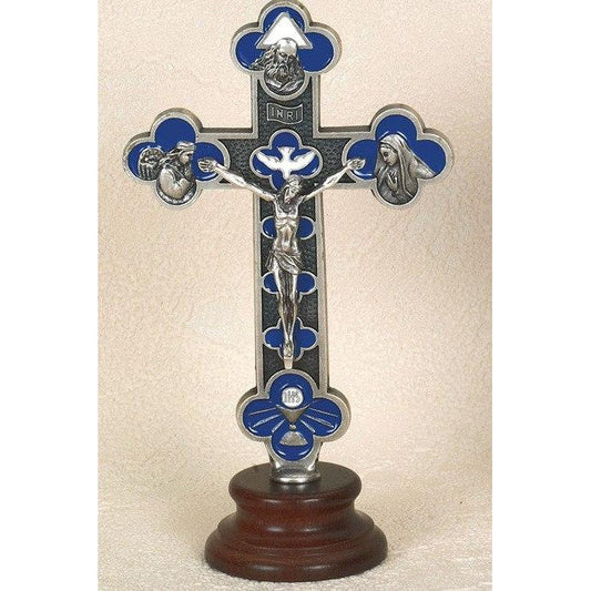 Trinity Standing Crucifix - Silver Tone, On Wooden Base