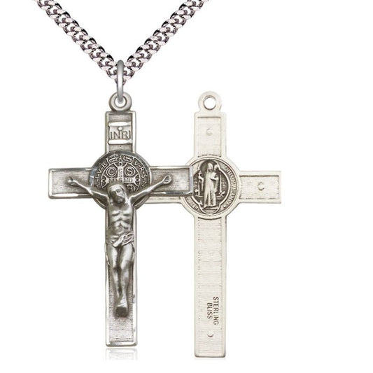 St. Benedict Sterling Silver Crucifix with Chain
