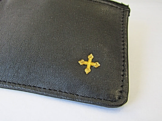 Sheepskin Leather Brass Cross Rosary Case