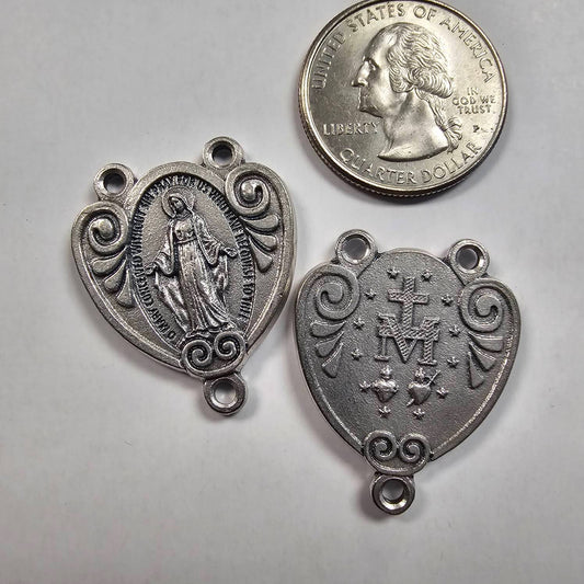 No Stock, Join WaitlistRosary Center piece in enamel - Our Lady Untier of Knots with Sacred Heart of Jesus on back
