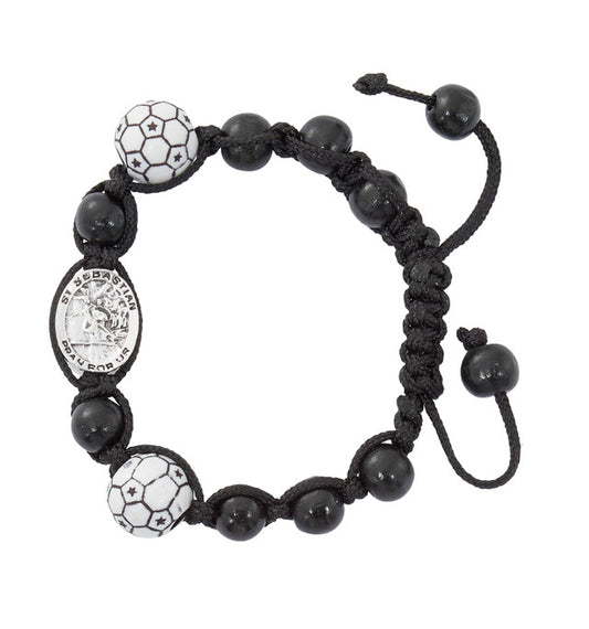 St. Sebastian, Sports, Black Wood Bead Corded Rosary (3 Variants)
