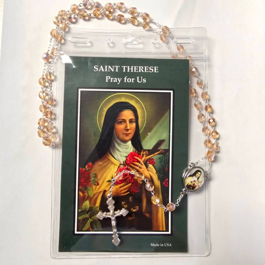 Saint Therese Glass Bead Rosary with Prayer Card - #28