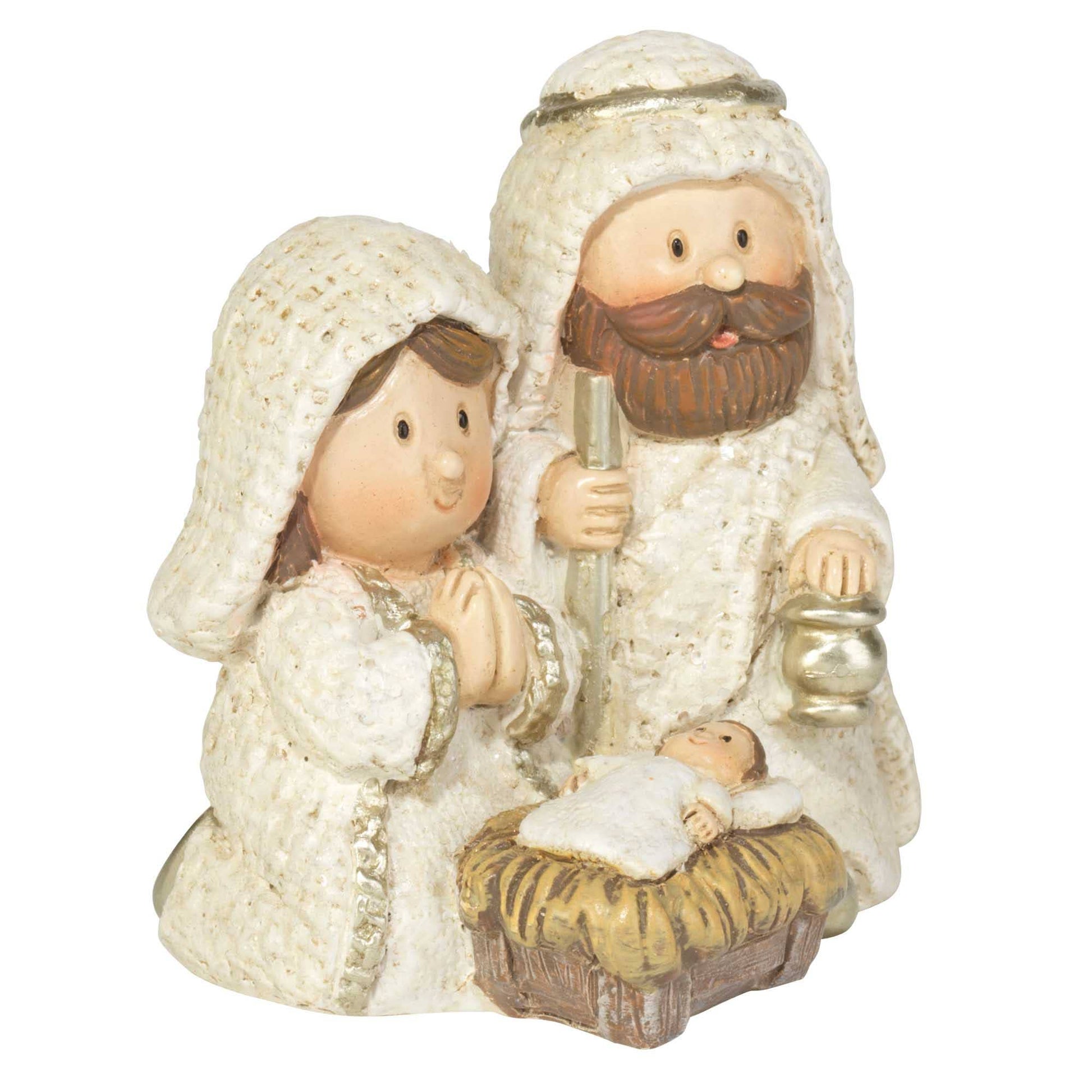 Sweet Holy Family figure is great for kids or the young at heart with its childlike faces and softly glittered finish.