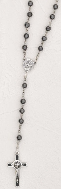 6mm Hematite Roasay with -Silver tone St Benedict center -Black Cross with Silver tone Corpus and St Benedict Medal