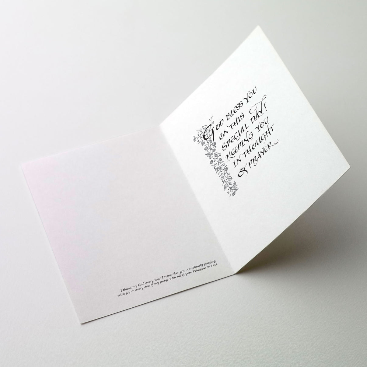Inside Text: God bless you on this special day! Keeping you in thought and prayer.