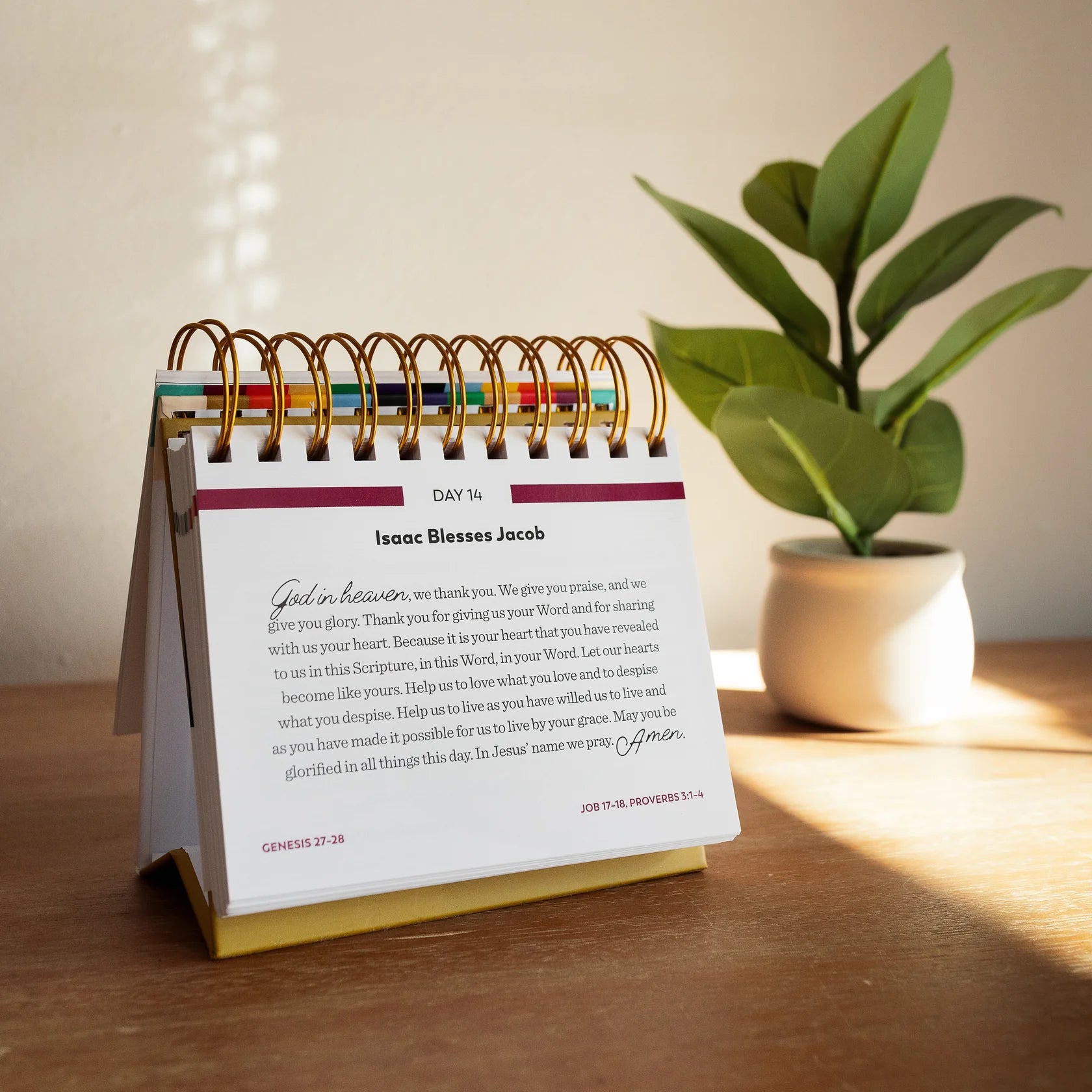 The Bible in a Year perpetual Daily Calendar is complete with: