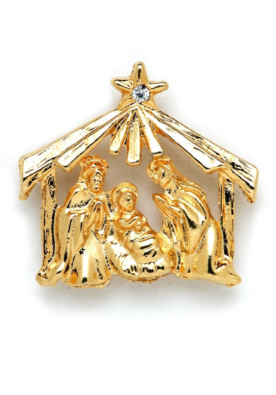 Gold-tone Lapel Pin of the Nativity, with White Stone positioned in the star