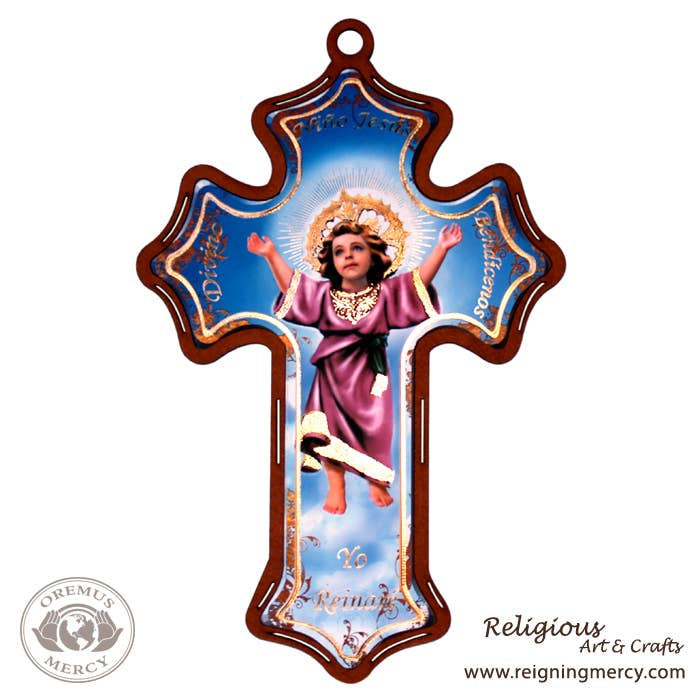 16.5 x 10.5" Decorative Wood Cross with image of El Divino Nino (The Divine Child).
