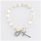 First Holy Communion Pearlescent White Heart Shape Children Bracelet.