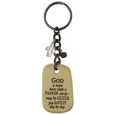 Crafted metal dog tag keyring to keep on car keys as a reminder to drive safely