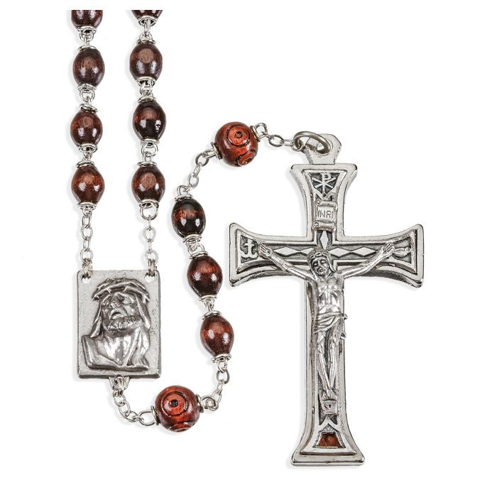 6mm x 9mm Maroon Palisander Wood Bead Rosary.