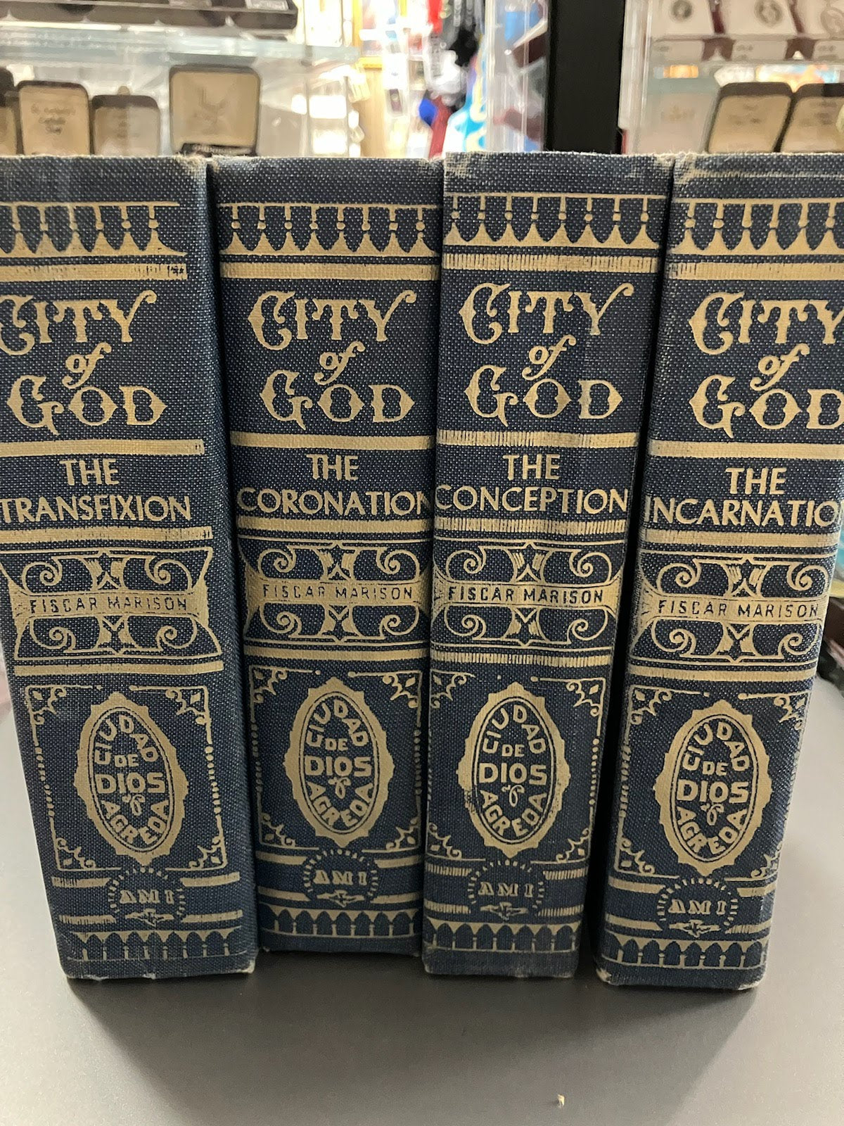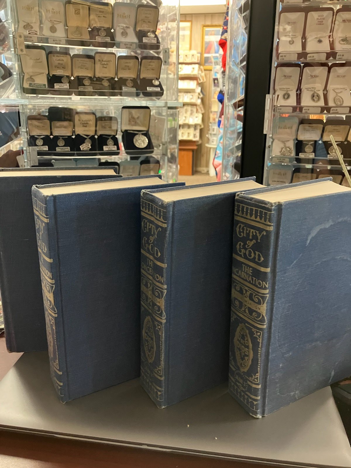 This magnificent set is an heirloom that should be in every Catholic home library. Dictated to Ven. Mary of Agreda (1601-1664) by the Blessed Mother herself, The Mystical City of God is an amazing collection of four books of revelations about the life of Mary and the divine plan for creation and the salvation of souls that has been enthralling readers for centuries.