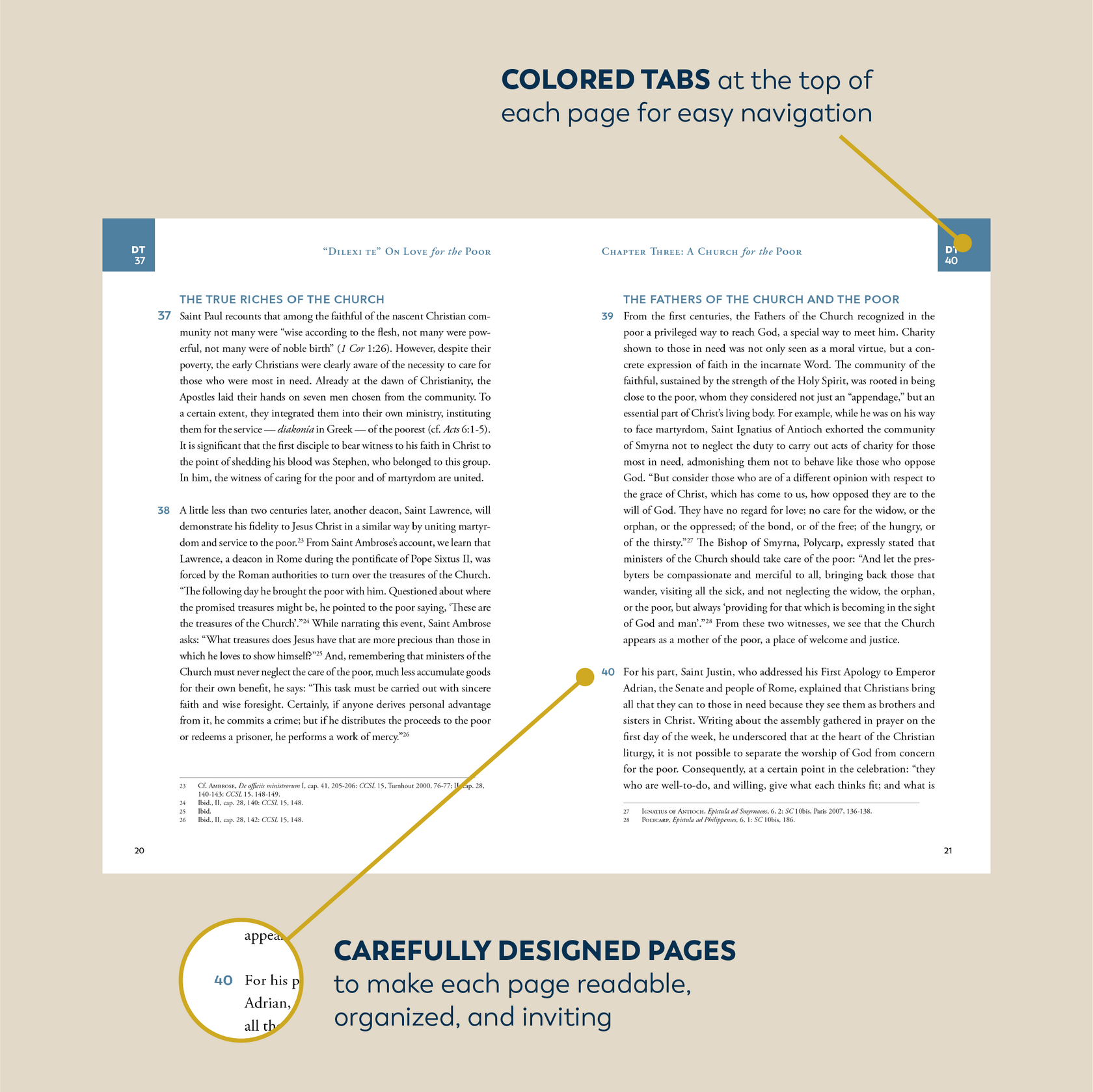 - Colored tabs with paragraph numbers at the top of each page for easy navigation