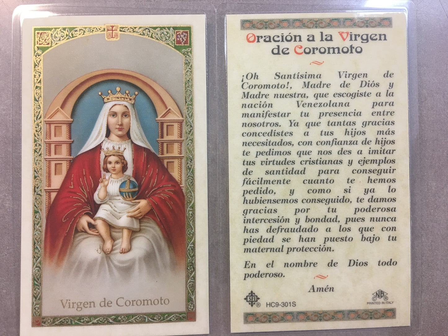 Laminated Spanish Holy Card to Our Lady of Coromoto.