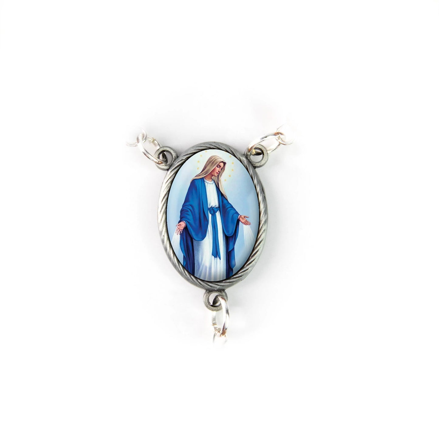 This beautiful, unique 22 inch rosary has beads crafted from Mother of Pearl, also called Nacre and is made in Bethlehem, Israel. It features an oval Our Lady of Grace medal, along with a dangling crucifix cross pendant at the end. Each rosary includes a Certificate of Authenticity and is packaged in a high quality, gift ready plush velvet gift box.