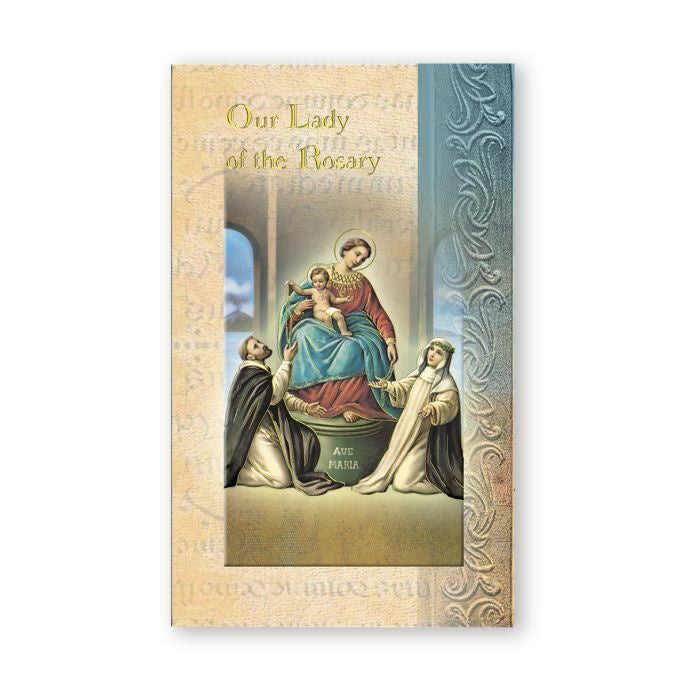 Our Lady of the Rosary 2 Page Biography, Name Meaning, Patron Attributes, Prayer to Saint, Feast Day Gold Stamped Italian Art 5.375" X 3.25"