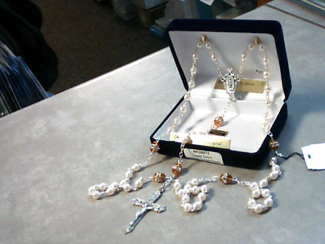 Pearl rosary with Our Father beads in Topaz Zircon Rondelle for November