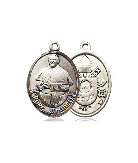 Sterling Silver Medal with image of Pope Francis on the front and papal coat of arms on the back of the medal.