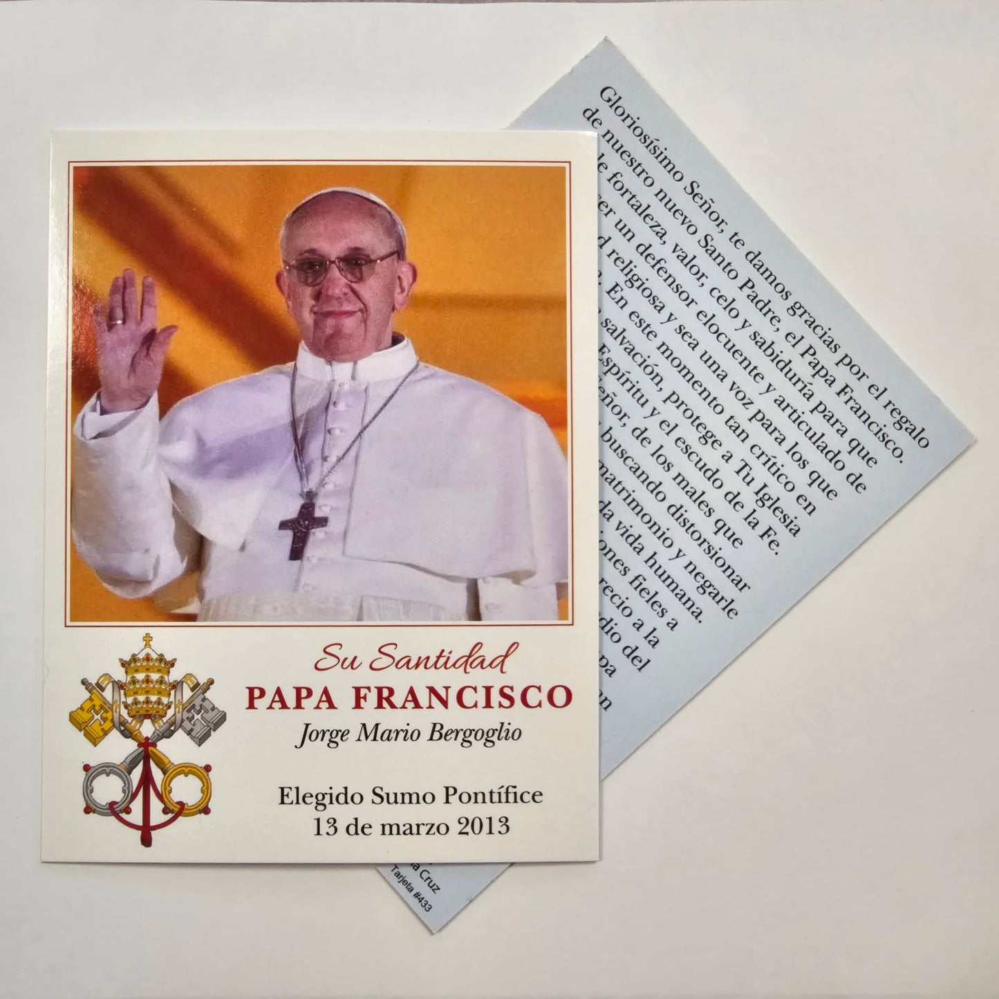 - Spanish: Prayer for the new Pope on the back.