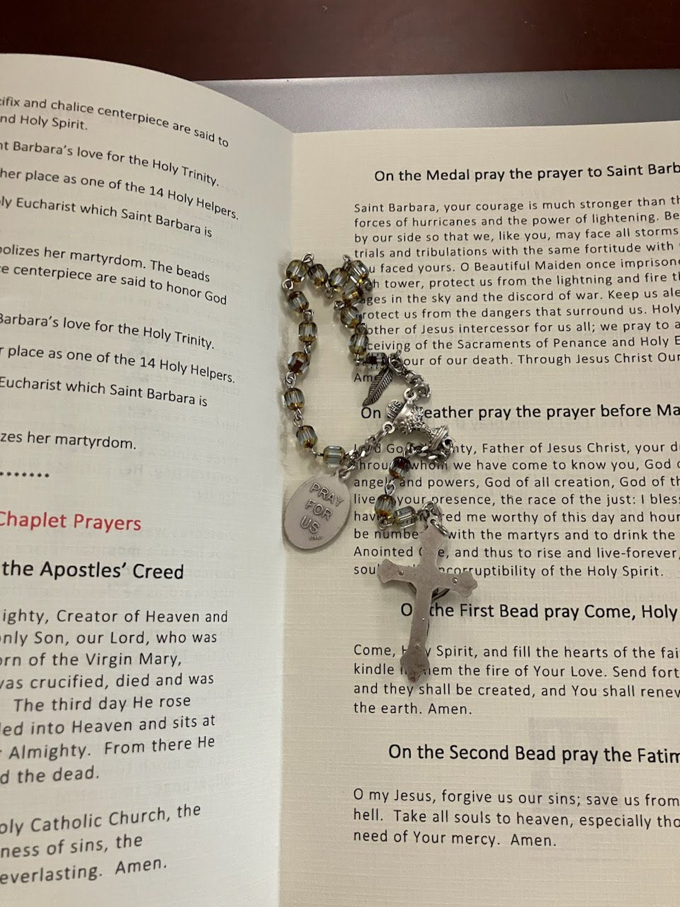 The Chaplet comes with a prayer folder. The picture shows the front and the inside of the prayer folder and chaplet. Priced for one chaplet and one prayer folder.