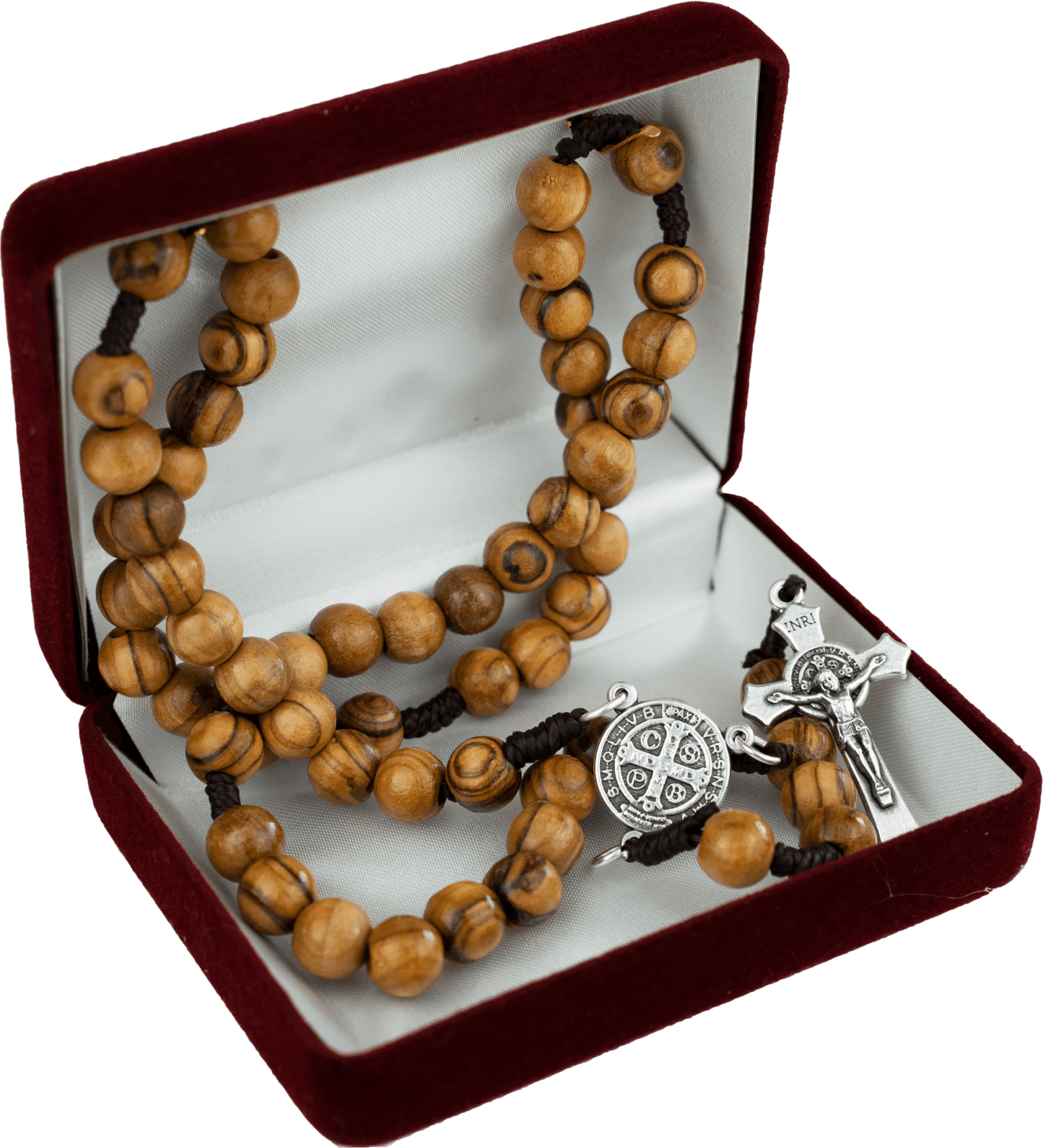 This rosary features the Saint Benedict seal and a dangling crucifix cross pendant. In keeping with St Benedict tradition, the metal is made in Italy. Each rosary includes a Certificate of Authenticity and is packaged in a high quality plush velvet gift box.