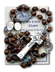 Stations of the Cross Deluxe Chaplet with Brown Wood Beads. Packaged with a Laminated Holy Card & Instruction Pamphlet. (Overall 6.5” x 3.5”)