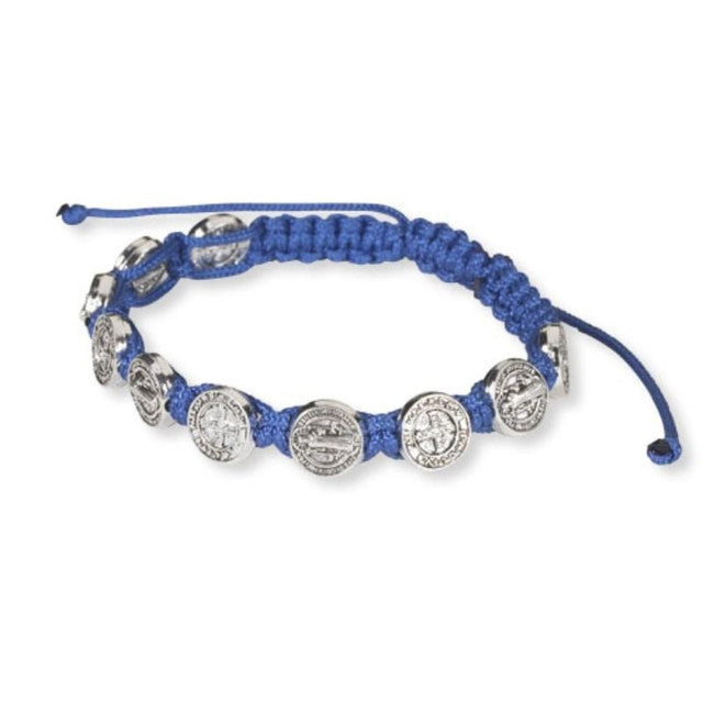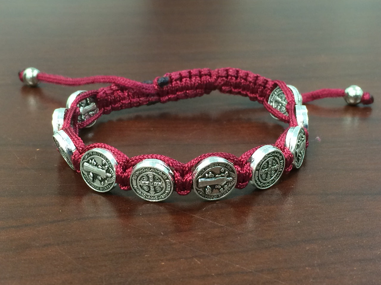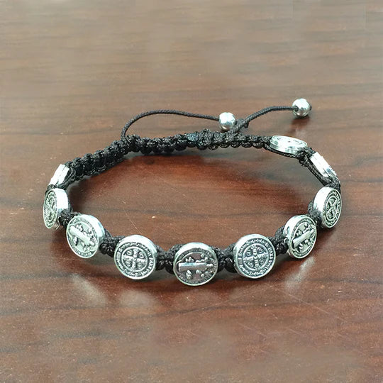 Saint Benedict Slip Knot Bracelet with Ten Detailed St. Benedict Medals.