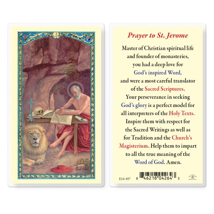 Saint Jerome laminated Holy Card.