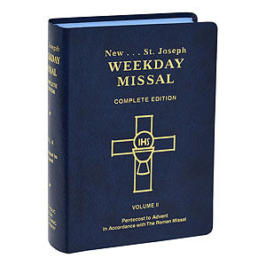 This Perpetual Saint Joseph Weekday Missal (Vol. II) by Catholic Book Publishing offers all the Weekday Masses with their corresponding options and prayers. Following the liturgical year, this volume contains all Weekday Masses from Pentecost to Advent, and with its attractive blue cover, it is easily distinguished from Volume I. This easy-to-use missal is the perfect companion to anyone who wishes to enhance their participation in the Mass.