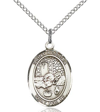 Sterling Silver St. Rosalia Pendant on a 18 inch Sterling Silver Light Curb Chain
