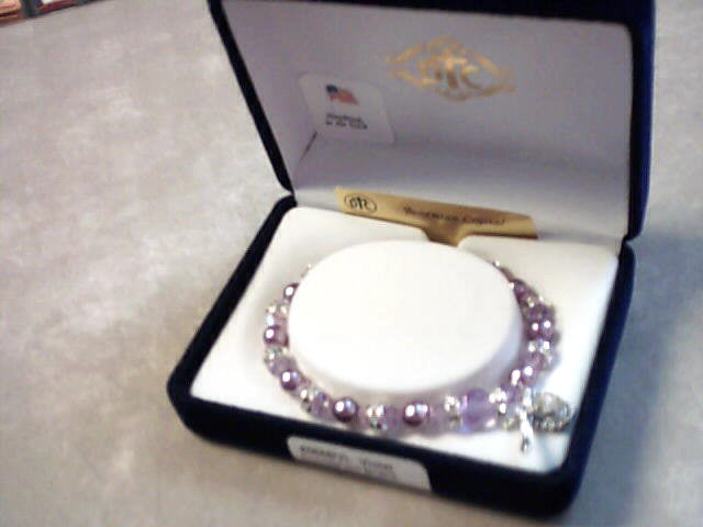 Violet crystal and pearl stretch bracelet with crucifix and Miraculous Medals
