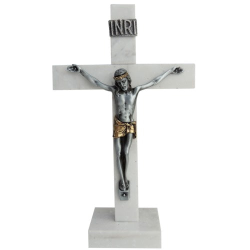 This white corian standing crucifix is a special way to celebrate the sacraments. Sized for displaying on a desk, shelf, or bedside table. A thoughtful Catholic gift for all ages to appreciate.