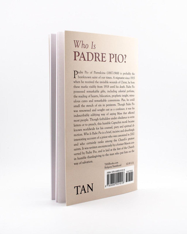 Though Padre Pio was renowned and sought out as a confessor, it was his indescribably edifying way of saying Mass that affected most people. Though forbidden under obedience to write letters or to preach, this humble Capuchin monk became known worldwide for his counsel, piety and spiritual direction. Who Is Padre Pio is a brief, incisive and absorbingly interesting account of a priest who was canonized in 2002 and who certainly ranks among the church's greatest saints. It was written anonymously by a former Mason converted by Padre Pio, and is laid at the feet of the Church in humble thanksgiving to the man who put him on the way of salvation.