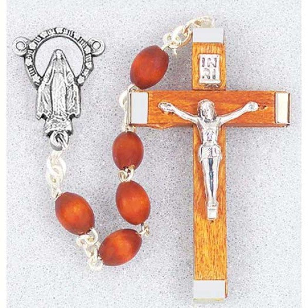 7 x 9mm Polished Brown Oval Boxwood Bead Rosary.